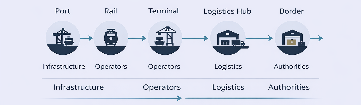 Understanding how infrastructure operators, logistics companies and institutions align operationally in complex transport ecosystems.